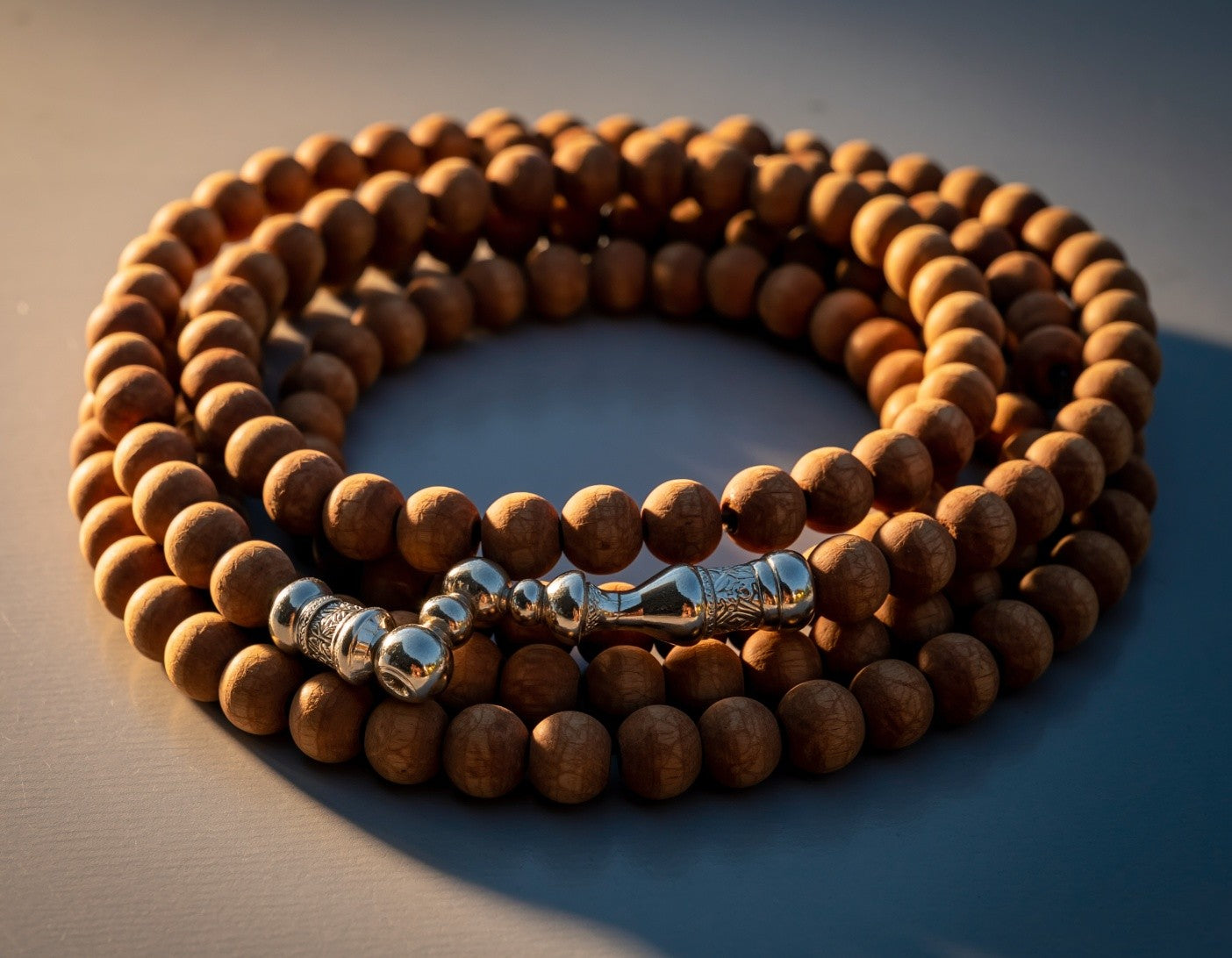 This exclusive Karungali Mala combines the grounding properties of authentic ebony wood with refined silver spacers, creating a powerful tool for deepening your spiritual practice. Each of the 108 beads has been energized to amplify protective vibrations and cultivate inner stability during meditation. The thoughtfully integrated silver elements enhance both aesthetic appeal and energetic resonance, supporting heightened focus and conscious awareness. Ideal for practitioners seeking to strengthen their connection to earth-based spiritual traditions while maintaining a refined, intentional approach to their daily sadhana. Includes authenticity certificate and energization documentation.